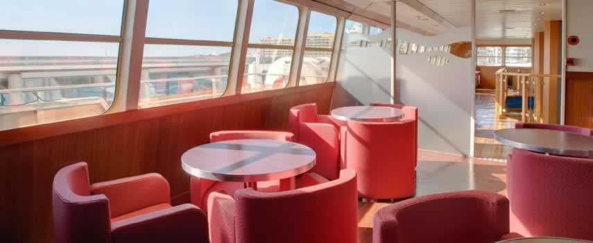 Enjoy a relaxing ride to the Bahamas on the Discovery Cruise Ship. There are comfortable economy or first-class seats.
